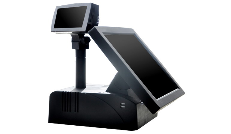 · 收银屏是15寸五线式电阻屏,客户屏是8位LED数码屏或VFD客户屏.