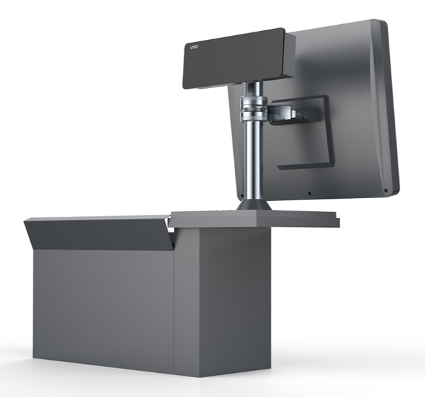 通道式收款机,分体式收款机。12.1屏面设计,单屏/双屏设计,大齿轮打印机。主机,主板采用笔记本设计。